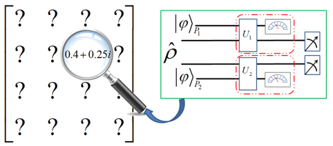 在当今时代,有效地从海量数据系统中提取所需信息无疑具有重要意义。信息的有效提取是信息学、物理、化学、生物学等领域的一个热门课题。在量子物理学中,量子态的研究是其核心内容之一,因为它存储了物理系统的所有信息。直接测量任意量子态的密度矩阵元素的任务无论在理论上还是实验上都是一个极其重要的挑战。密度矩阵的标准测量方法是量子态重构(quantum state tomography),它首先需要完成所有的测量,然后通过重构算法计算出所有的矩阵元信息。因此,量子态重构对于高维密度矩阵的测量,不仅受限于测量个数随矩阵维度的指数增加,而且受限于重构算法复杂性快速增加。