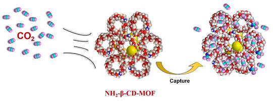 NH2-β-CD-MOF吸附二氧化碳的示意图