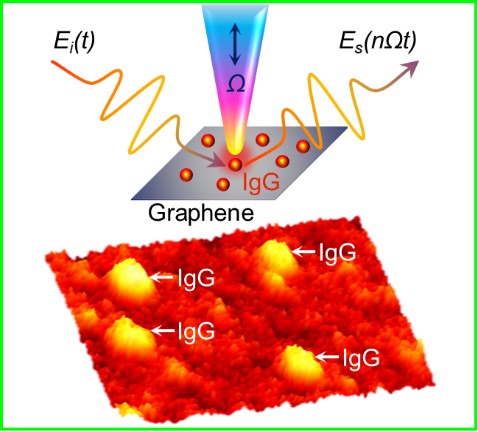 研究团队利用石墨烯具有原子级的平整度、稳定的单蛋白分子物理吸附能力以及超强的太赫兹波反射性能,设计并采用具有最佳近场太赫兹信号增强能力的铂纳米探针,结合单分子样品制备技术,在国际上率先实现了单个蛋白分子(免疫球蛋白和铁蛋白)的太赫兹光谱成像探测,为单分子水平上生物大分子的太赫兹探测研究提供了有效方法。相关工作以“Near-Field Nanoscopic Terahertz Imaging of Single Proteins”为题于12月11日在线发表于国际著名期刊Small(IF 11.5),并被遴选为封面文章。重庆研究院博士研究生杨忠波为该论文第一作者,重庆研究院王化斌研究员和高研院李江研究员为共同通讯作者。