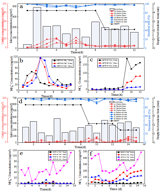 中国科学院成都生物研究所污染生物治理项目组研究生宦臣臣在吕青阳博士、闫志英研究员的指导下,从活性污泥中筛选出一株高效HN-AD菌株HY-1,鉴定为Paracoccus denitrificans,并将其应用于生物滴滤反应器(BTF)进行除臭研究。结果表明,HY-1对NH4+、NO2-和NO3-的去除速率分别为17.33 mg-N·L-1·h-1、21.83 mg-N·L-1·h-1和32.37 mg-N·L-1·h-1,且对不同比例的混合氮源均有较好的去除效果;同时,HY-1在厌氧条件下也能以14.56 mg-N·L-1·h-1的速率执行反硝化功能。结合菌株脱氮特性、氮平衡和功能基因分析,确定了HY-1在好氧条件下的硝化-反硝化代谢途径。最后,将菌株HY-1应用于堆肥厂的BTF中进行除臭效果强化验证,结果表明在BTF中接种HY-1不仅能保持高效除臭效果(NH3去除率>98.07%),而且能大幅度降低循环液中NH4+和NO3-的离子浓度,有效地控制了二次污染,节约了BTF的除臭成本。这些发现拓展了HN-AD菌株的应用领域,为生物除臭提供了新的思路。