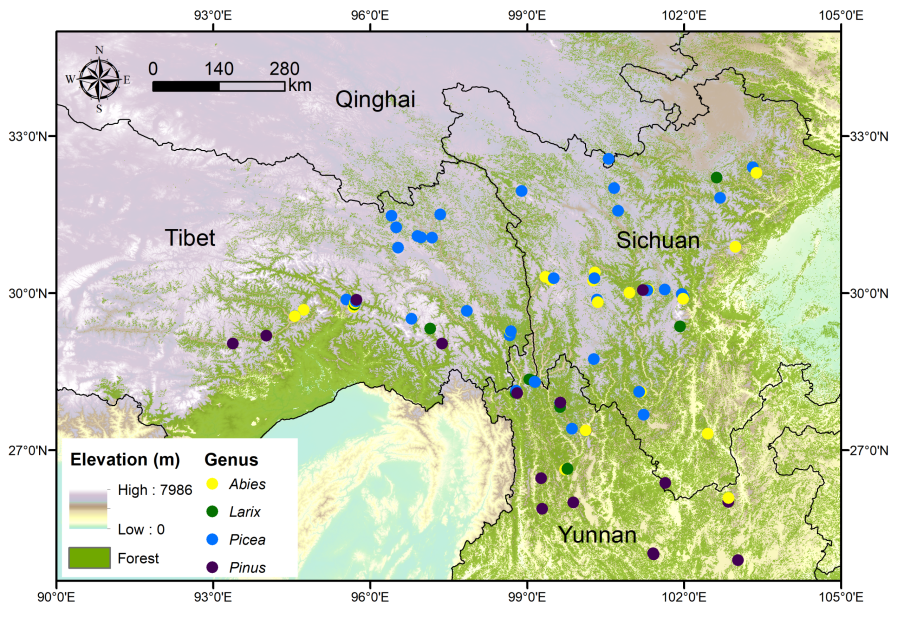 上述研究结果近期以“Contrasting coordination of non-structural carbohydrates with leaf and root economic strategies of alpine coniferous forests”为题发表在植物学领域国际著名期刊New Phytologist (2024)上。该论文第一作者为成都生物研究所特别研究助理张佩佩和郑州大学丁俊祥博士,通讯作者为尹华军研究员和河南农业大学孔德良教授。论文的合作者还包括美国西北太平洋国家实验室Nate G. McDowell研究员和成都生物所特别研究助理汪其同。本研究得到了国家自然科学基金项目、中科院“西部之光”交叉团队项目、四川省科技计划项目和西藏自治区科技计划等项目的联合资助。
