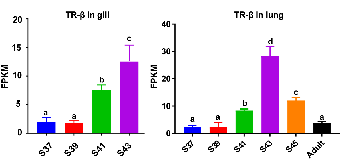 图1 变态发育过程中甲状腺激素受体TR-β在鳃和肺中的表达模式