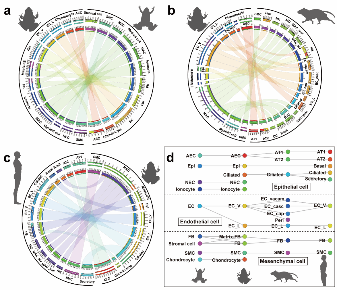 以上两项成果于近期分别以“What frog gill resorption brings: loss of function,cell death,and metabolic reorganization”和“Single cell RNA analysis uncovers the cell differentiation and functionalization for air breathing of frog lung”为题发表在动物学一区期刊《Frontiers in Zoology》和Nature旗下一区Top期刊《Communications Biology》上,其中后者被Communications Biology编辑评选为Featured article。中国科学院成都生物研究所常利明博士为两篇论文的第一作者,江建平研究员和朱未博士为两篇论文的通讯作者,齐银研究员等攻关团队成员对该项研究工作进行了指导。相关研究工作得到中国科学院重点部署项目、国家自然科学基金、四川省科技厅自然科学基金、中国博士后科学基金项目、中国科学院成都研究所攻关团队项目的联合资助。