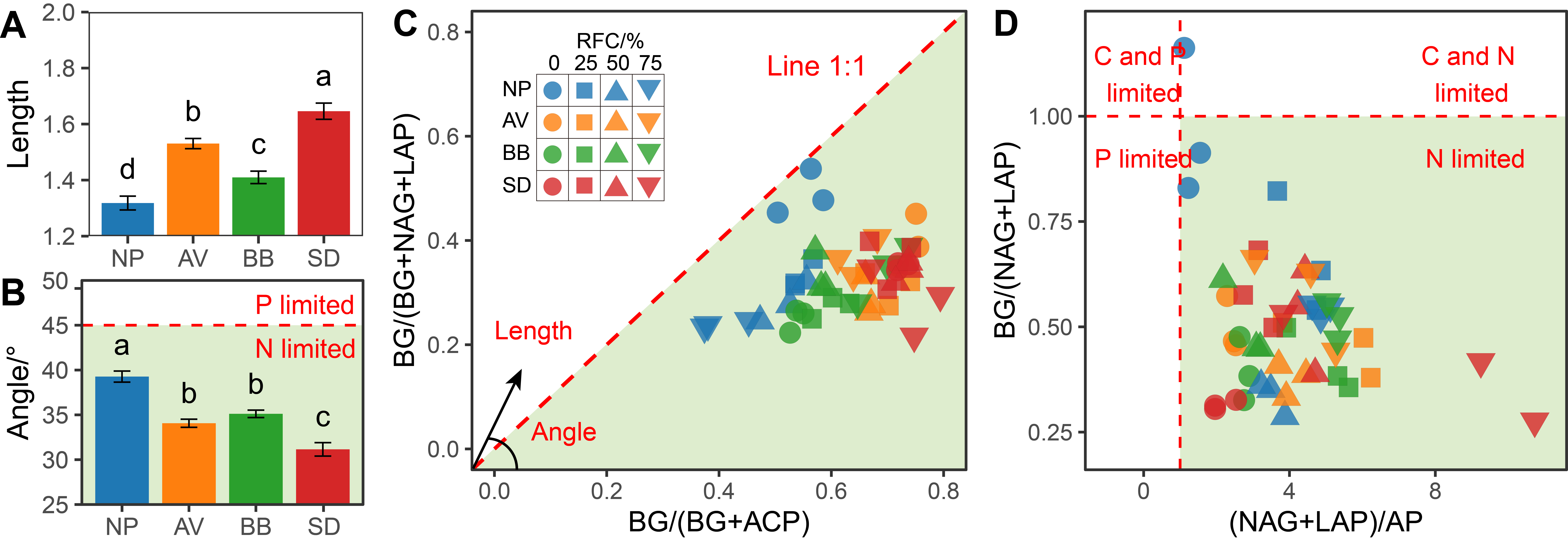 相关成果以Enzyme stoichiometry reveals microbial nitrogen limitation in stony soils为题发表在Science of the Total Environment上。博士研究生黄龙为第一作者,李芳兰青年研究员为通讯作者。