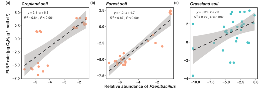 Fig.5 添加混合C源后,Paenibacillus的相对丰度与FLNF速率之间的相关性。