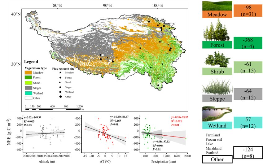 图4 青藏高原通量研究站点及其生态系统碳交换潜力汇总分析