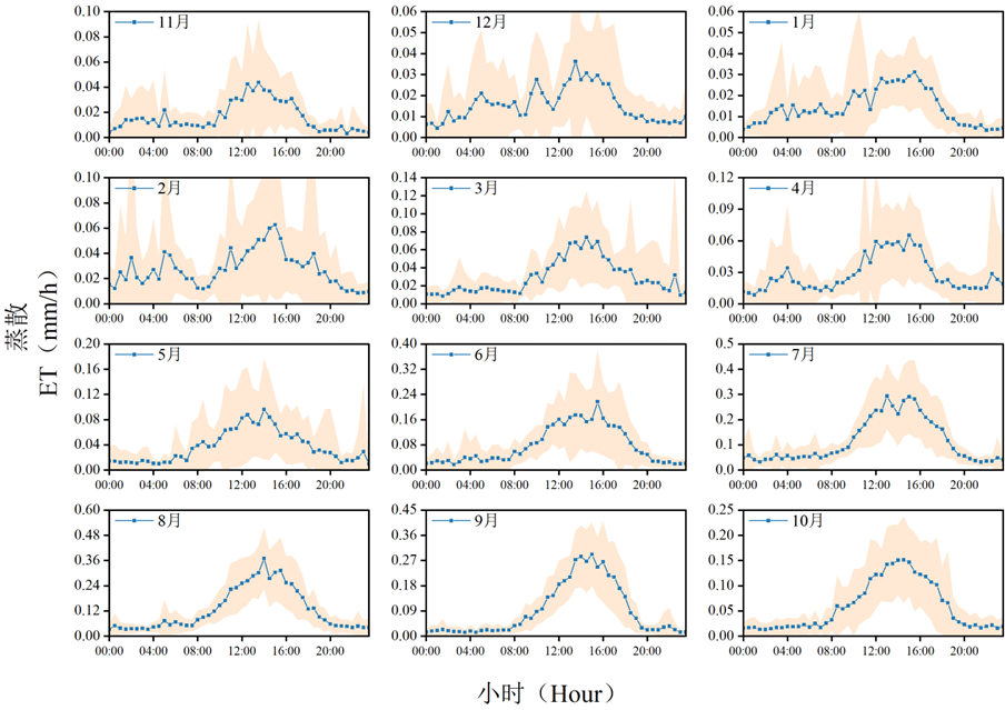 图6 亚高山森林生态系统的月平均蒸散动态(2020年11月—2021年10月)