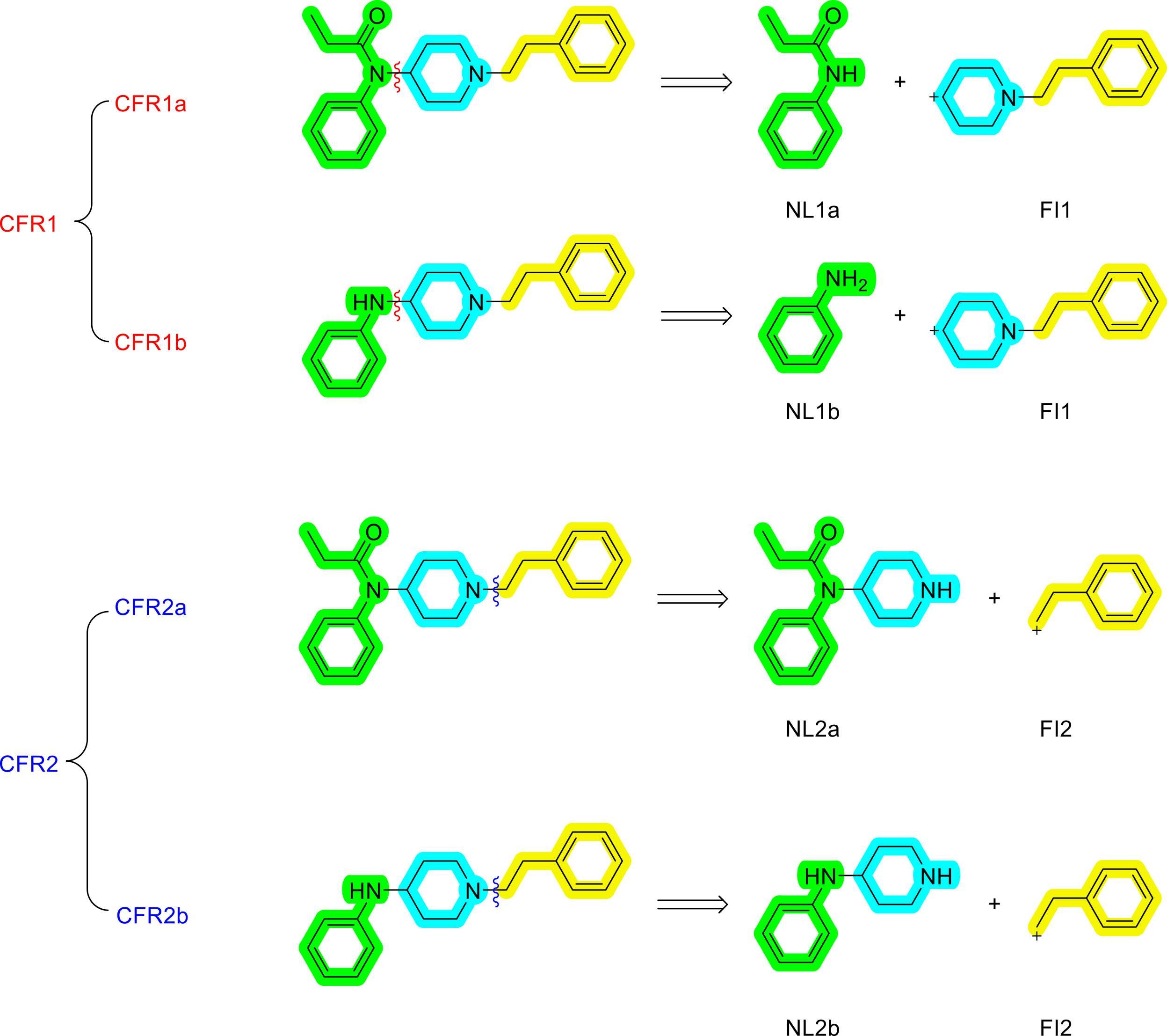 图2. FTNs的特征碎裂途径(characteristic fragmentation routes,CFRs)和特征碎裂产物(characteristic fragmentation products,CFPs),以芬太尼和脱丙酰基芬太尼为例