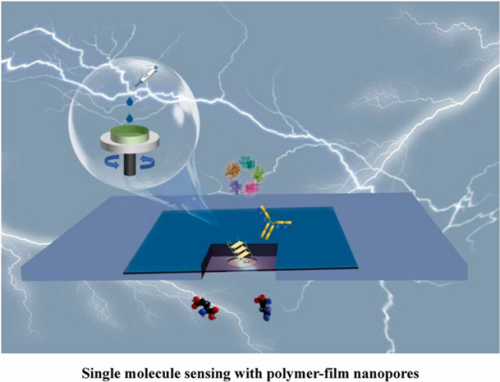 在新型固态纳米孔方面,制备了一种含有光开关偶氮苯侧链的聚合物(Azo-PMA)纳米孔。通过控制介电击穿方法在Azo-PMA膜上制备出小于2-20 nm的纳米孔,这种纳米孔具有良好的离子传输活性、pH耐受性和光响应性,并能在高浓度电解质条件下稳定工作,展现出低离子电流噪声。该纳米孔可实现对核酸和蛋白质的单分子分辨,能够精确检测单个核酸和蛋白质分子的特征信号,在生物分子检测领域展现出巨大潜力,有望大幅提升生物分子检测的精度和效率,为生物医学研究提供更为精准的分析工具。(Azo-PMA nanopores of sub - 20 nm length for unimolecular resolution of nucleic acids and proteins., Talanta, 2025, 285, 127402.)