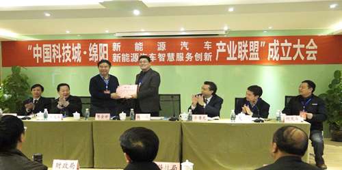 为加快推进绵阳新能源汽车产业发展,绵阳科技城中科创新育成中心牵头组建了中国科技城·绵阳新能源汽车产业联盟暨新能源汽车智慧服务创新产业联盟,并担任两个联盟的秘书长单位。12月9日,中国科技城·绵阳新能源汽车产业联盟暨新能源汽车智慧服务创新产业联盟的成立大会在河北·平武工业园举行。绵阳市委副书记、市长林书成在大会上致辞,并为中国汽车工程学会理事、清华大学教授、博士生导师陈全世颁发“绵阳新能源汽车发展技术顾问”聘书,为两个产业联盟的理事长单位授牌。省经信委副主任李曙光、绵阳市政府秘书长夏明、市政府副秘书长姚光华、赵德均出席大会。