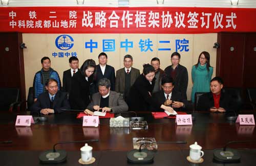 中铁二院所属技术中心、土建二院、科研院、地勘公司和成都山地所科技与合作处、总工办、山地灾害与地表过程重点实验室等部门负责人参加了座谈及签约仪式。