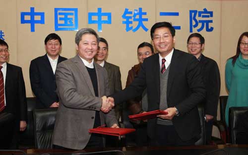 在与会人员的共同见证下,邓伟和许佑顶分别代表双方签订了《战略合作框架协议》。双方以川藏铁路建设为契机,坚持“需求导向、科技支撑、成果共享、服务发展”的原则,围绕铁路选线、建设和运营期间的山地灾害问题,一致同意建立长期的、全面的、深度的战略合作关系,重点在山地灾害区域分布、风险评估、防治及监测预警等方面加强科技合作与人才交流培训,共同推动双方快速、健康、可持续发展。
