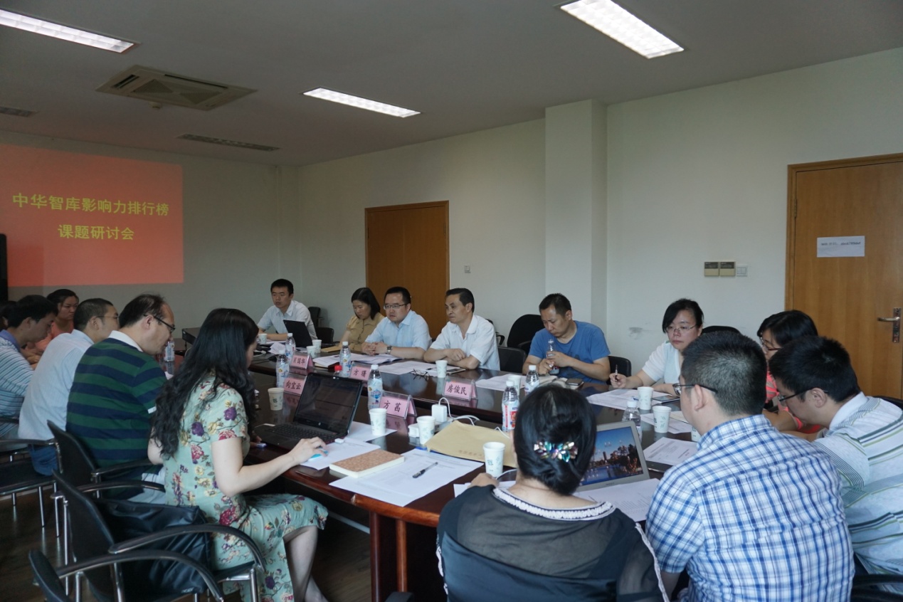 方曙对向宝云一行的来访表示热烈欢迎。向宝云首先介绍了社科院方面进行该课题研究的总体情况,结合中共中央十八届三中全会关于“加强中国特色新型智库建设”的要求以及中办、国办于2015年初联合印发的《关于加强中国特色新型智库建设的意见》,对课题进行了阐释和说明;并就该课题研究在合作形式、数据采集和分析、评价指标体系建立等方面阐述了社科院的主要观点和大体思路。