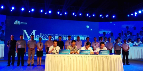 6月26日,由德阳市政府、四川省科技厅、中科院成都分院主办,德阳市科知局、德阳市教育局、德阳市质监局等共同承办的“德阳创客·拥抱春天”主题活动在德阳举行。科技部高新司副司长曹国英,四川省科技厅副巡视员胡秀成,成都分院党组书记、常务副院长王学定,党组副书记王嘉图,德阳市委副书记、代市长赵辉,副市长钱书模,四川工程职业技术学院书记司徒渝,院长李登万出席活动。