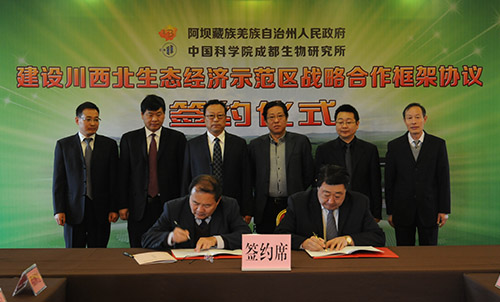 3月1日,中国科学院成都生物研究所与阿坝藏族羌族自治州人民政府在成都举行《建设川西北生态经济示范区战略合作框架协议》签约仪式。