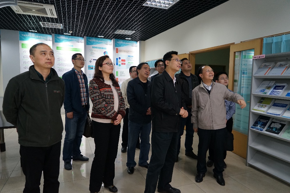 赵京东调研考察了中心机房,中心网络与信息技术部主任文奕介绍了中心机房运行情况,介绍了作为中国科技网成都分中心和中国科学院科技数据中心成都分中心的软硬件设施以及中心在大数据存储和数据挖掘方面的技术布局,重点介绍了国家重大科技基础设施“高海拔宇宙线观测站”数据存储分中心的作用和当前进展情况。