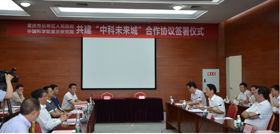 重庆市长寿区区委书记赵世庆、区长巴川江、区政协主席张华、重庆研究院院长袁家虎等出席签约仪式。区委常委、副区长蒋牧宸与重庆研究院党委副书记、副院长、纪委书记韦方强代表双方签约。“重庆长寿·中科未来城”项目包括“四基地一中心”,即环保与健康科技产业基地、智能制造与新能源产业基地、通用航空产业基地、长江生态环境科创基地和中科院科技成果转化中心。