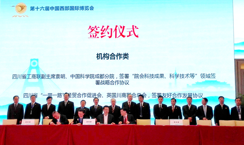 11月2日,在第十六届西博会期间,成都分院与四川省工商联在“全国民营企业与西部高端产业合作发展大会暨川商总会经济论坛”签署战略合作协议,旨在各自发挥科技成果、人才智库优势和广泛服务联系民营企业的优势,共同推进民营企业技术创新和促进民营经济创新驱动与转型发展。据悉,大会共有22个项目签约,投资金额720.3亿元。