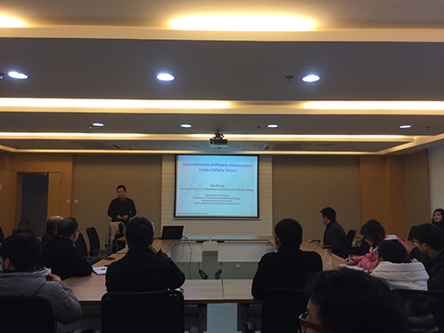 会上,张鑫作了题为“Visualizing Protein Misfolding and Aggregation in Stressed Cells”的学术报告,分享其研究团队在可视化蛋白质错误折叠和聚集研究方向上的成果和最新进展。