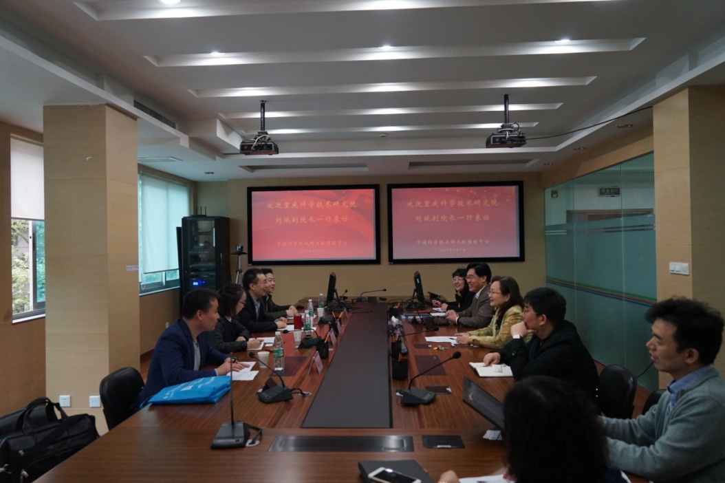 4月7日,重庆市科学技术研究院副院长刘斌带领重庆科技发展战略研究院董事长陈勇等一行4人到访中科院成都文献情报中心,双方举行合作座谈会。中心主任张志强主持座谈会议,中心副主任杨志萍和主要相关部门负责人等参加了座谈会。