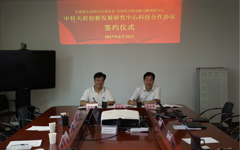 6月16日,成都文献情报中心与致公党四川省委员会在中科院成都文献情报中心召开共建新型智库“中科天府创新发展研究中心”合作座谈会和协议签约仪式。致公党四川省委员会专职副主委肖剑书及副秘书长张红梅与研究室、宣传处、组织处等部门负责人一行六人,成都文献情报中心主任张志强及副主任杨志萍与科技处、学科咨询服务部、区域发展咨询部等部门负责人参加座谈会与签字仪式。张志强主持座谈会。