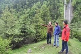 项目组成员考察鹧鸪山样地     项目组查看米亚罗试验地15年森林恢复成效