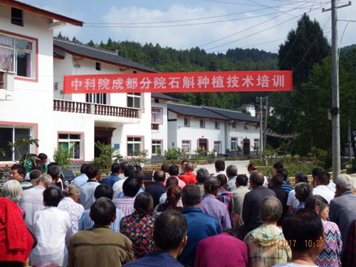 6月22日,成都分院组织专家在剑阁县银溪村举办了石斛产业扶贫技术培训会,130多名村民参加了培训。