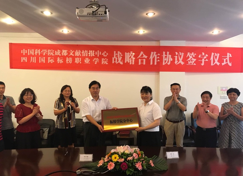 7月17日,中国科学院成都文献情报中心与四川国际标榜职业学院在标榜学院举行合作座谈会和战略合作协议签约仪式暨标榜学院科技文献分馆和标榜学院查新分中心揭牌仪式。成都文献情报中心主任张志强、副主任杨志萍,四川国际标榜学院董事长兼院长阎红、党委书记任再生、执行院长叶建忠、图书馆馆长沈治宏等20余人参加了会议。会议由叶建忠主持。