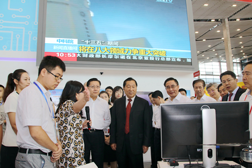 全国政协副主席、民革中央常务副主席齐续春,四川省委书记、省人大常委会主任王东明,绵阳市委书记彭宇行等领导视察了中科院展区,并听取了 “墨子”号量子卫星地面望远镜、高精度三维扫描仪、深海侧扫声呐等参展项目介绍。