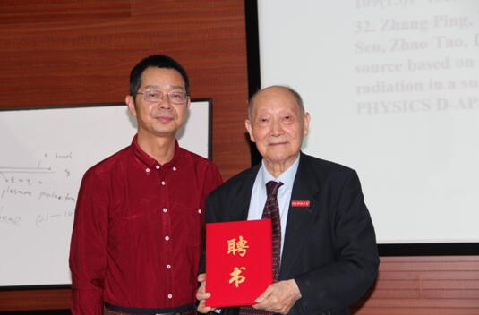 在院期间,刘盛纲院士作客重庆研究院“大师讲坛”,作题为“On the Vavilov-Cherenkov Radiation”的学术报告。报告中,刘盛纲院士介绍了瓦维洛夫-切伦科夫辐射的早期发现和最近的研究进展,以及关于切伦科夫辐射的阈值和非阈值的一些新问题和自己的研究工作。演讲最后刘盛纲院士还勉励在座的青年科研人员大胆提问,并殷切希望他们对待科研工作务必一丝不苟,严谨求实。