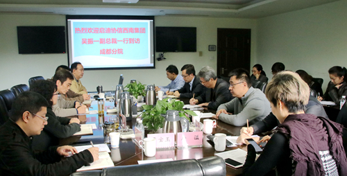 11月1日, 启迪控股高级副总裁、启迪协信集团书记吴振一一行到访成都分院。双方就平台建设、科技金融、科技成果转化、创新人才培育等领域进行了深入交流。成都分院分党组副书记王嘉图,启迪协信集团副总裁麦勇作等参加座谈。