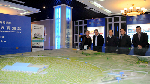 座谈会前,杨林兴一行参观了高海拔宇宙线观测站项目沙盘,听取了王学定关于项目进展情况的介绍。