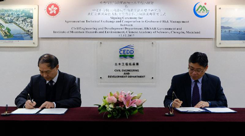为进一步深化双方在山地灾害风险管理、一带一路综合减灾、人才教育和技术交流等方面的合作,双方一致同意签署第二个五年技术交流合作协议书。为此,12月12日,崔鹏院士和香港土木工程拓展署署长林世雄太平绅士代表双方签署了第二个五年技术交流合作协议。崔鹏院士表示,双方续签合作协议将提升双方的合作水平,探索更多的合作空间、渠道和方式,期待香港专家响应国家“一带一路”倡议,将管理山泥倾泻的成功经验用于“一带一路”沿线国家的自然灾害综合减灾,更多造福大陆和国际社会。