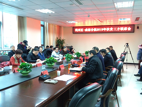 扶贫慰问期间,叶彦一行还出席了在利州区政府召开的利州区-成都分院2019年扶贫三方联席会,介绍了成都生物所在利州开展的扶贫工作和2019年的帮扶规划,对利州区、成都分院给予的支持表示衷心感谢,并表态来年继续做好帮扶工作,巩固、稳定利州的脱贫成果,最终交上一份满意的答卷,打赢脱贫攻坚战。
