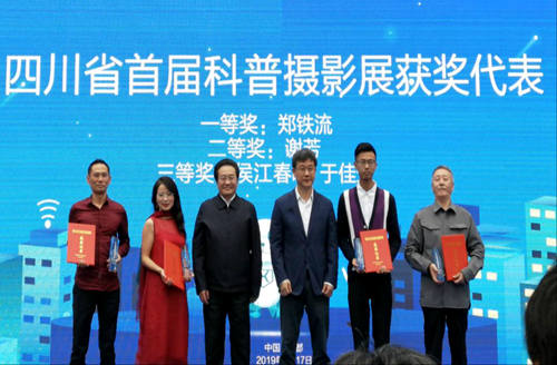 活动期间,邓小刚、张雨东为四川省首届科普摄影展获奖代表颁奖,并现场参观了科学快车等科普展品。