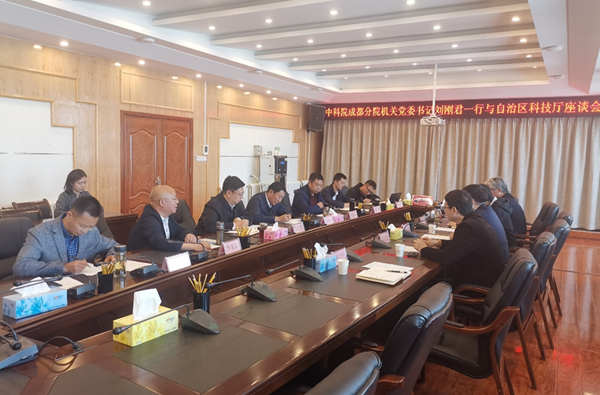 6月1日,成都分院分党组成员、机关党委书记刘刚君一行赴西藏调研,就进一步推进院区合作与西藏科技厅召开座谈会。西藏科技厅党组副书记、厅长赤来旺杰,党组成员、副厅长王俊杰,中科院科技促进发展局科技合作处副处长邱显杰参加会议。会议由西藏科技厅党组成员、副厅长钟国强主持。