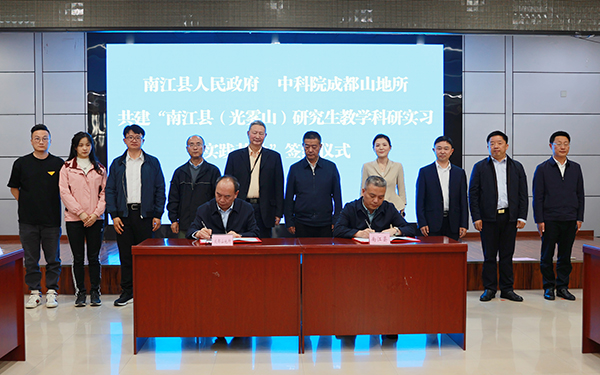 4月26日,成都山地所与南江县政府签署协议,共建南江县(光雾山)研究生科学教学实习实践基地。所长文安邦、巴中市政府副市长李本勇出席。签约仪式由南江县委副书记张杰主持。