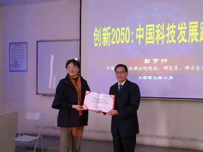 10月20日,中国科学院成都分院院长彭宇行研究员做客西南财经大学“光华讲坛”,做了《创新2050:中国科技发展路线图》为题的报告。西南财经大学公共管理学院副院长章群教授主持了报告会。