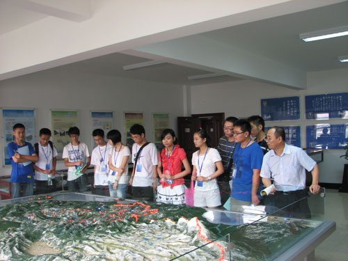 嗣后,在谢洪研究员的带领下,师生们参观了成都山地所的楼道展版、成果展览室和模拟实验厅等,使他们亲身感受到山地人从事山地灾害、山地环境和山区发展的科学氛围。