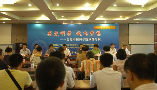 7月22日,以“感受科学,放飞梦想”为主题的2010年中国西部青少年科技营开营仪式在成都分院举行。成都分院党组书记袁家虎,党组副书记彭丽玲,四川省科协党组成员、副主席刘进,四川省青少年科技活动中心主任刘西林,四川省科技馆副馆长雷斌禄等领导出席了开营仪式。开营仪式由彭丽玲主持。