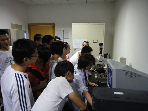 27日,农业中心相关人员带领大家来到四川省国家良种试验示范基地,讲解了作物遗传育种中“不育系、保持系和恢复系”三系的基本概念和杂交水稻的基本原理,让大家领略到在一个国家级区试基地上各受试品种竞相“赛跑”的景象。大家还进入到该所公共实验技术中心和农业中心实验室,近距离接触了先进的多功能显微镜和倒置荧光显微镜,首次清晰地观察到染色体和细胞器;同时也参与了TOC等生态学方面的实验。