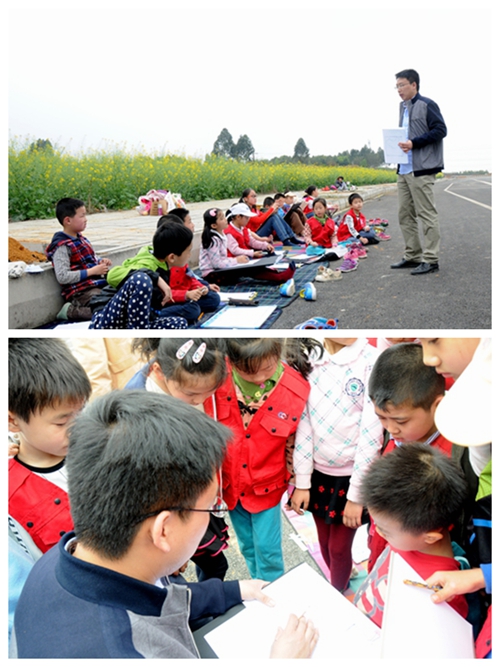 “请大家退到白色线以外,飞机马上要起飞了。”指导教师杜小林双脚夹着无人机,手中操纵着遥控器做最后调试。“快、快、快,给飞机让出跑道。”其中一名小记者组织起现场秩序。小朋友们分两列纵队排开,目不转睛地盯着无人机。