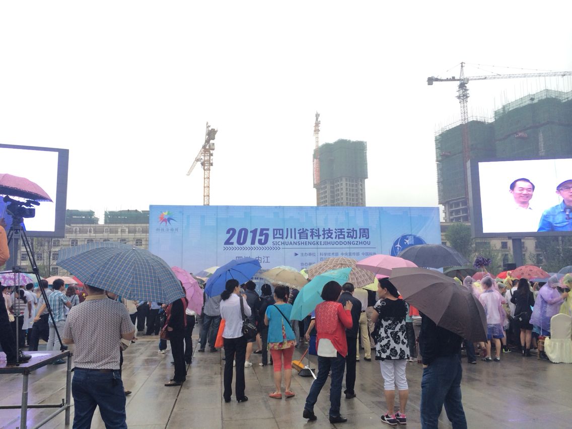 本次活动是由国家科技部、中宣部、中国科协、四川省政府主办,四川省科技厅、内江市政府承办。活动从早上八点半正式开始,虽然内江清早有小雨,但是工作人员和公众的热情丝毫没有受到影响,不少民众打着雨伞前来参观,整个活动气氛热烈。