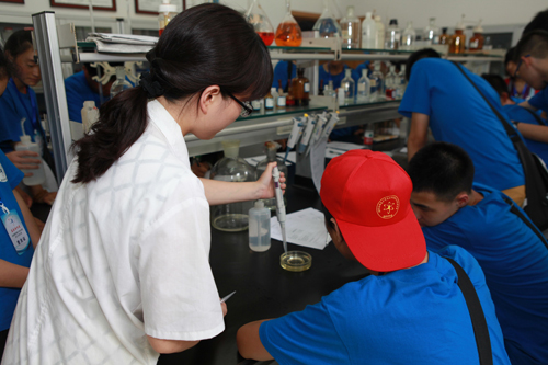 7月23日,2015年青少年高校科学营山地专题营的100名营员分4组走进中科院成都山地所科研实验室,动手参与科学小实验,近距离探寻科学的奥秘。