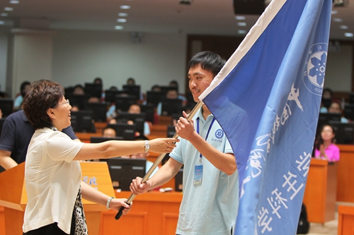 开营仪式上,国科大校长丁仲礼院士希望同学们通过此次夏令营活动了解中国科学院,感受科学之美,播下热爱科学的种子,成为科学领域的精英,助力中国梦的实现。中科院前沿科学与教育局副局长王颖为夏令营营员授旗。