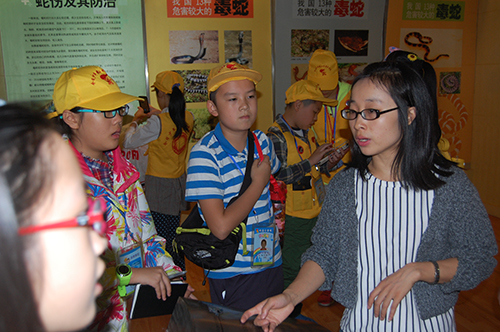 活动期间,小记者们在讲解员的带领下参观了两栖爬行动物科普馆和两栖爬行动物摄影展。讲解员们为参观者详细讲述了两栖爬行动物的起源、分类和进化发展;两栖爬行动物的共同特征;羊膜卵出现在动物进化史上的里程碑意义;两栖爬行动物的生活史、繁殖特征、生活环境、通讯交流、骨骼特征;两栖爬行动物的濒危保护物种及其分布;中国危害较大的毒蛇种类;两栖爬行动物的价值及其和人类的关系。