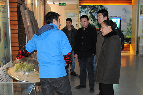 1月24日上午,中国科学院科学传播局局长周德进和综合处处长徐雁龙在成都生物所党委副书记、副所长刘刚君,成都分院综合办公室负责人的陪同下参观了两栖爬行动物科普馆。