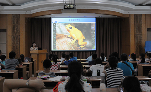 参观结束后,小记者们还参加了成都生物所科普大讲堂活动,由王守红博士给大家带来的科学脱口秀--“奇异的两栖爬行动物”,深入浅出的为小记者介绍了蛙、蛇、蜥蜴等动物的特性,加深了大家对两栖爬行动物的理解与认知。讲座进行中,小记者纷纷感叹大自然的神奇。