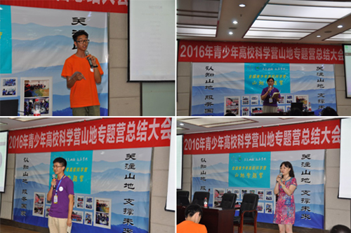 闭营仪式上,4位营员代表分享了他们在营期间的各种体会和收获,交流了参加专题营活动的收获和对山地科学新的认识,领队老师代表也分享了与营员们相处的美好时光,并对大家今后的学习和生活表达了良好祝愿。