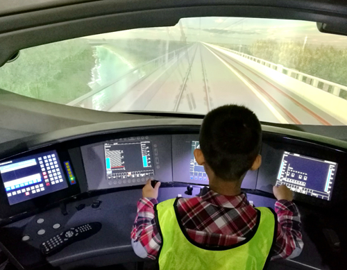 在西南交通大学轨道交通国家实验室,孩子们通过观看科普动画片和互动问答,了解了中国轨道交通的发展历史、中国为俄罗斯设计的铁翅鸟造型的高铁以及未来高铁设计3D模拟,每个孩子亲自体验380B高铁的驾驶,做了一次小小列车驾驶员。在西南交通大学牵引动力国家实验室,孩子们跟随老师参观了实验室的机车以及大型机械,现场观摩了磁悬浮模型试验,通过与教师互动,了解了磁悬浮列车的悬浮原理,亲身体验了磁悬浮小车。